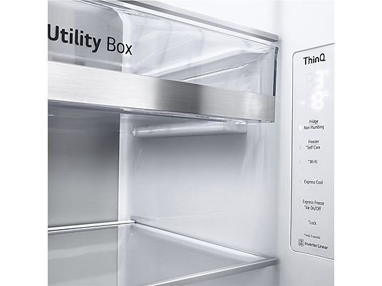 El Frigorífico americano LG GSLV91MBAC es una maravillosa adición para las familias numerosas gracias a su alta capacidad. Posee tecnología Door & Linear Cooling ™ para mantener tus alimentos frescos más tiempo y un FRESH Balancer ™ en su cajón de frutas y verduras para preservar los óptimos niveles de humedad. Accedible con Wi-Fi y la aplicación LG ThinQ para su gestión desde el exterior, lo hace extremadamente conveniente y eficiente. Además, viene con un odispensador que actúa con tecnología UVnano* para mantener tu agua libre de bacterias. Su elegante diseño en acero inoxidable y acabado interior metálico le da un toque sofisticado a tu cocina.