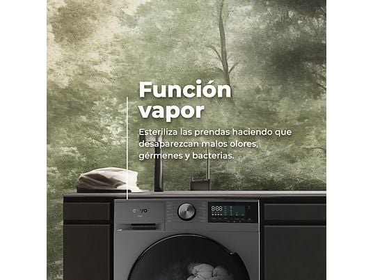 Esta lavadora secadora es la solución ideal para un lavado y secado eficiente y versátil. Con una clasificación de eficiencia energética A, este electrodoméstico demuestra un compromiso con el ahorro de energía y el cuidado del medio ambiente. Ahorra espacio en tu hogar al combinar lavado y secado en un solo equipo. Su motor E-Drive con tecnología Inverter garantiza un funcionamiento silencioso, eficiente y duradero. Además, la función Vapor Steam Wash esteriliza tus prendas, eliminando olores, gérmenes y arrugas, mientras que la tecnología STAIN MASTER resuelve eficazmente problemas de manchas. Con amplia capacidad de 8 kg de lavado y 6 kg de secado y numerosas funciones avanzadas, esta lavadora secadora ofrece comodidad y eficiencia en un solo equipo. Además, su pantalla táctil y las opciones de seguridad y limpieza de tambor hacen de ella una elección sofisticada y funcional para tu hogar. Medidas: Alto x ancho x fondo: 85 x 60 x 48 (cm)