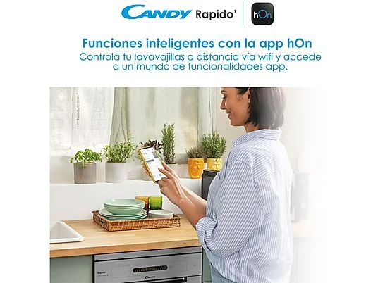 Gracias a la conectividad Wi-Fi puedes controlar a distancia tu lavavajillas mediante la app hOn. Además, podrás acceder a diversos consejos, recomendaciones y nuevas funcionalidades para un día a día más Eficaz. Cuenta como novedad con la función Snap&Wash que te recomienda el mejor ciclo con tan solo tomar una foto.
