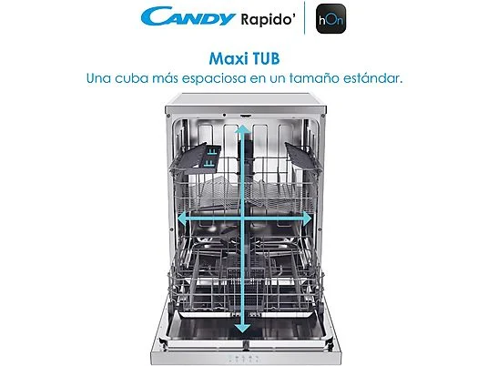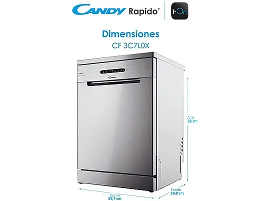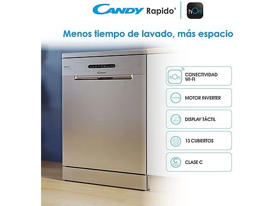 Lavavajillas – Candy Rapido’ CF 3C7L0X, 13 servicios, 5 programas, 60 cm, Motor Inverter, Wi-Fi, Inox